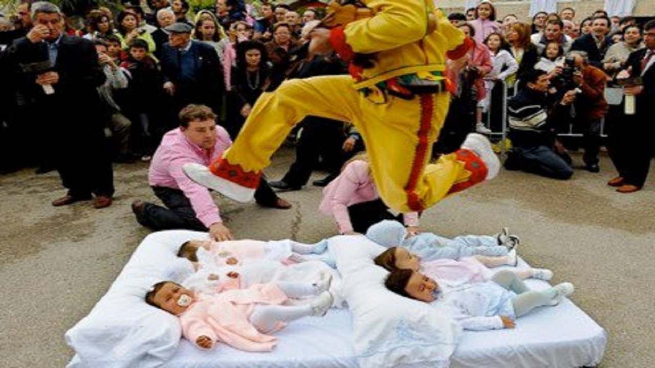 स्पेन में एक बेहद ही अजीबोगरीब नियम है कि यहां पुरुष नवजात शिशुओं के ऊपर कूदते हैं. यहां हर साल इसे एक उत्सव के रूप में मनाया जाता है. माना जाता है कि यह उत्सव नवजात शिशुओं को उनके वास्तविक पाप से मुक्त करता है.