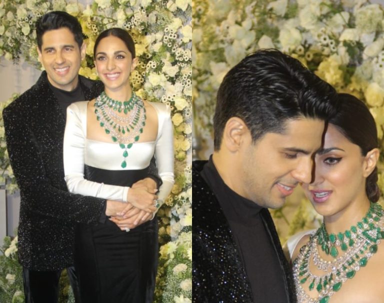 वही सिद्धार्थ मल्होत्रा ऑल ब्लैक आउटफिट में कियारा आडवाणी के साथ ट्विनिंग करते हुए काफी हैंडसम लग रहे हैं और इन दोनों की जोड़ी वाकई में बेहद खूबसूरत नजर आ रही है| अपने वेडिंग रिसेप्शन लुक को कंप्लीट करने के लिए कियारा आडवाणी ने ग्रीन कलर का हेवी नेकलेस सेट पहना हुआ था जो कि उनकी खूबसूरती में चार चांद लगा रहा है| सामने आई तस्वीरों में कियारा आडवाणी और सिद्धार्थ मल्होत्रा बेहद ही डेशिंग और क्लासी लग रहे हैं और सोशल मीडिया पर इस कपल की वेडिंग रिसेप्शन पार्टी की तस्वीरें खूब धूम मचा रही है|